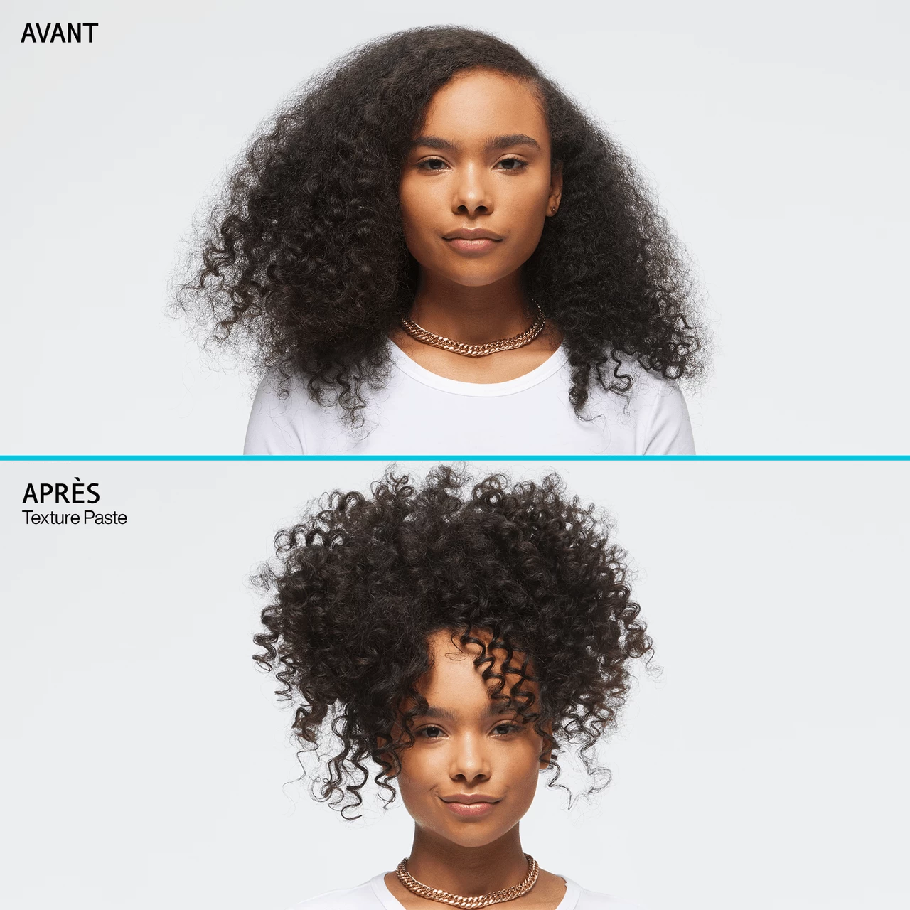 Styles texturés et flexibles pour plus longtemps.Texture Paste est une crème texturante qui définit les styles et les fixe durablement, leur permettant d’être remodelés à tout moment grâce à sa consistance souple. C’est la crème parfaite pour créer des coiffures durables, flexibles, non structurées ou ébouriffés.